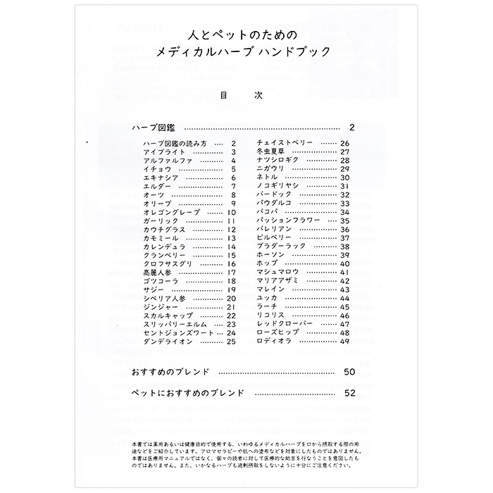 『人とペットのためのメディカルハーブ ハンドブック』は、日々の暮らしの中でハーブを取り入れるための基礎知識をわかりやすくまとめた一冊です。人とペット、それぞれに合ったハーブの活用方法が掲載されており、自然と共に暮らすための参考書としてご利用いただけます。巻末には、目的に応じたブレンド例も紹介されており、ハーブを生活に取り入れるヒントが満載です。